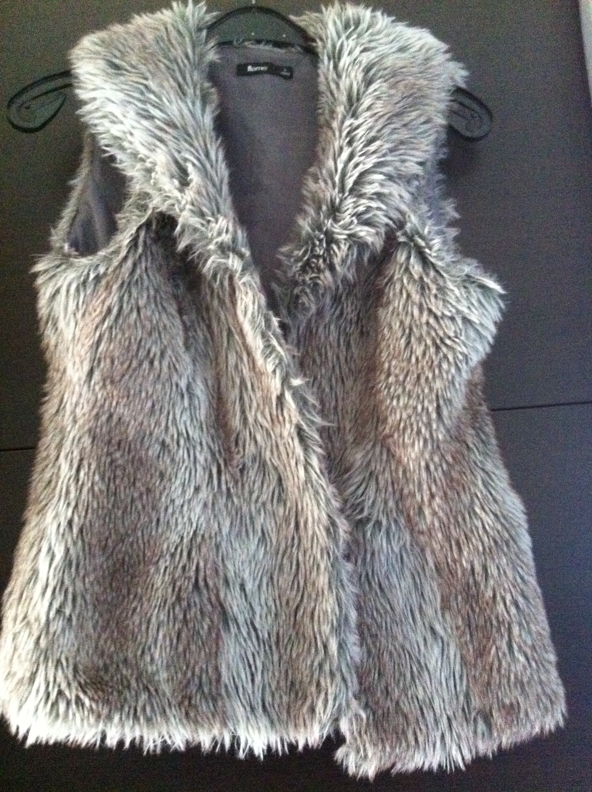 Im letzten Winter habe ich in eine hüftlange, graubraune Fake-fur-Weste investiert. Besonders bei modischen Experimenten gebe ich nicht viel Geld aus, weil mich mitunter doch der Mut verlässt und so manches gewagtere Kleidungsstück in meinem Schrank verkümmert. Also habe ich sie gebraucht bei Ebay erstanden, trage sie aber nun ständig. Sie ist einfach so kuschelig, es fühlt sich an, als hätte man ständig seinen Teddy dabei.