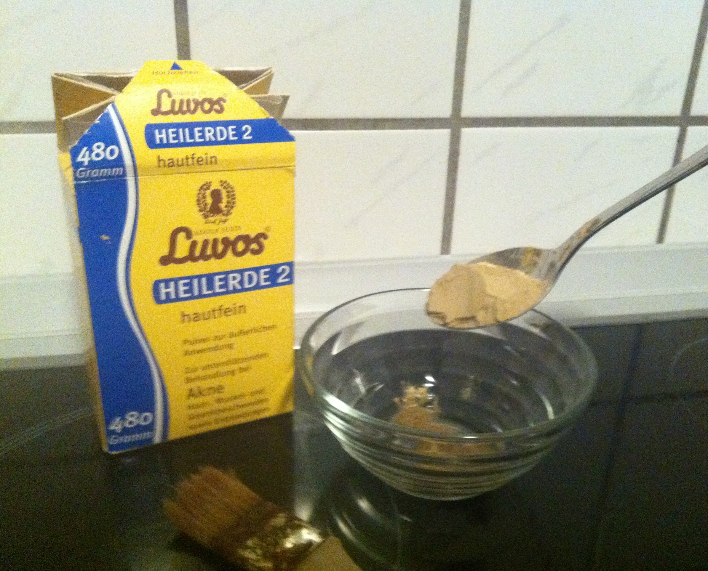 Vor einem halben Jahr habe ich bei Youtubeguru Ninagirl3 von der Heilerdemaske, die gegen Mitesser, Pickel, ölige Haut und sogar Akne hilft, gehört. Ich bin total begeistert davon, denn mein Hautbild hat sich dadurch sichtbar verbessert. Heilerde gibt es in der Apotheke oder bei DM für weniger als 5€. Wichtig: Heilerde für die äußere Anwendung kaufen! Das Ganze ist übrigens auch sehr günstig; meine erste Packung ist immer noch halb voll und das obwohl ich folgendes Treatment ungefähr zwei Mal in der Woche anwende: