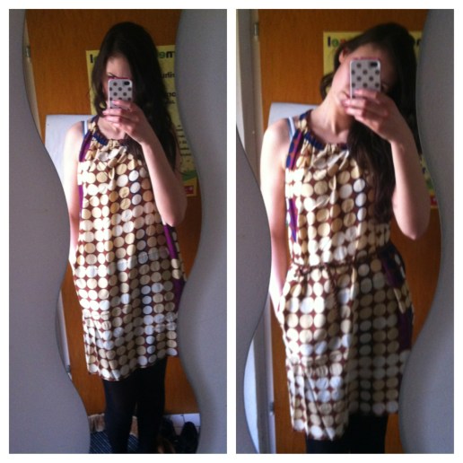Ich wollte dieses Kleid eigentlich auch, online war es aber ausverkauft. Habe mir dann das blaue schicken lassen und den blau-weißgepunkteten Rock + Blazer (von den beiden war ich dann mehr begeistert als von dem Kleid). Das Kleid musste ich abnähen lassen, so sieht es jetzt zumindest nicht mehr ganz sackmäßig aus.