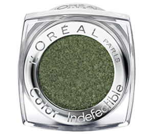 Grün ist eine der Trendfarben des Herbsts und bringt vor allem braune und grüne Augen zum Strahlen. Die Konsistenz der L’Oreal Indefectible Lidschatten erinnert stark an die „Eyes to kill“ Lidschatten von Armani (beides gehört auch zum gleichen Mutterkonzern…), es sind sanft gepresste Pigmente, die farbintensiven Schimmer auf den Augen hinterlassen. Im äußeren Augenwinkel und am unteren Wimpernkranz mit einem Smudge-Pinsel aufgetragen wirkt das Grün subtil und modern.