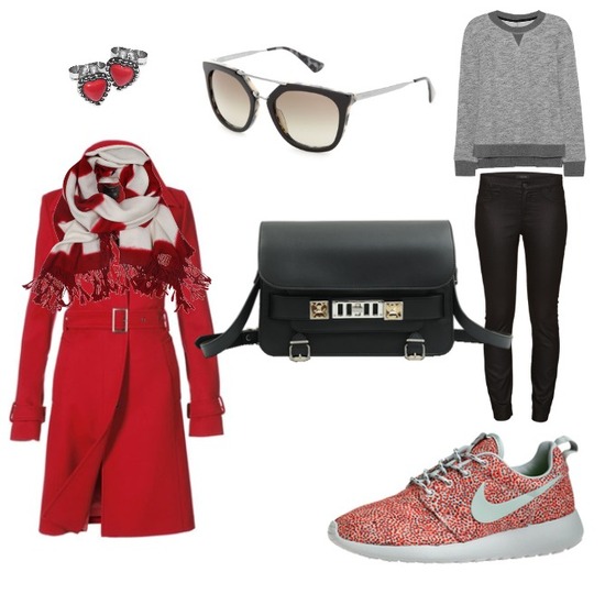 • Ohrstecker: Trendor (24,99€), Sonnenbrille: Prada, Modell Cinema (230€), Sweatshirt: Rag&Bone (185€), Trenchmantel: Madeleine (149€), Schal: Suzusan (189€), Tasche: Proenza Schouler PS11 (1525€), Hose: Comma (79,99€), Schuhe: Nike Rosherun (94,90€)